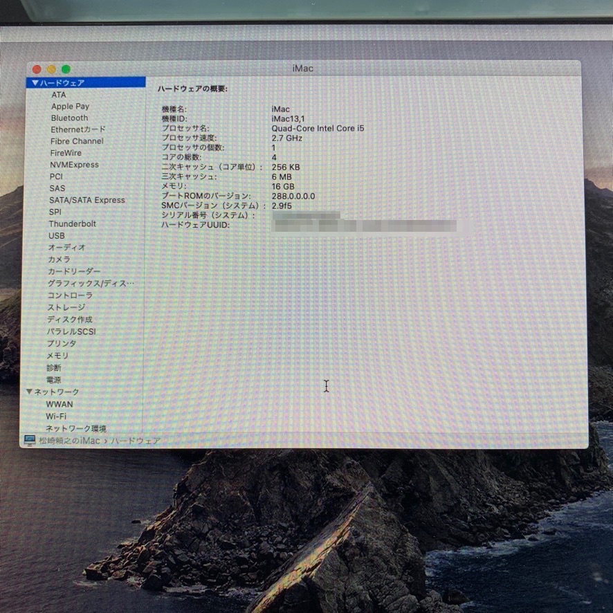 OSはCatalinaがインストールされていました。